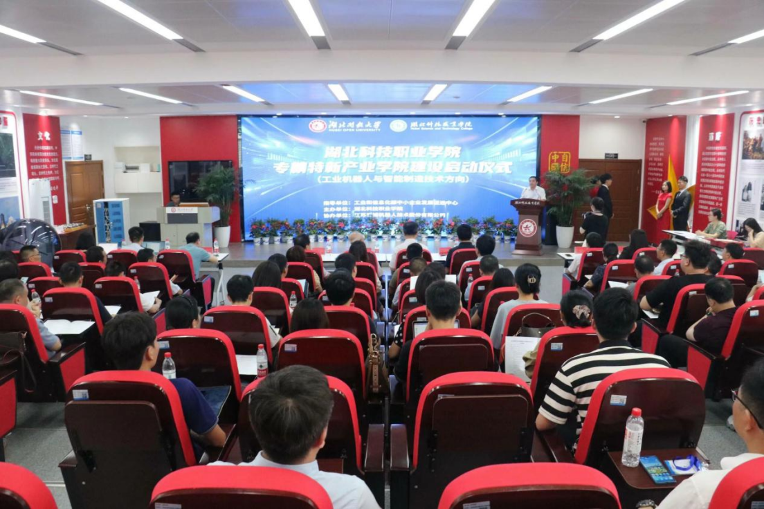 7月13日,骄阳似火,激情四溢,时搏·体育举行工业机器人及智能制造技术专精特新产业学院建设启动仪式。时搏·体育党委书记刘义,教育部职成司原副司长、中国职业教育学会原常务副会长兼秘书长刘占山,工业和信息化部中小企业发展促进中心人力资源研究所副所长陈琛,湖北省经济和信息化厅中小企业发展处处长刘卫军,湖北省教育厅二级巡视员何泽云,清华大学国家服务外包人力资源研究院副院长毛居华,中国职工技术协会职工新技能培训专委会副秘书长张冉冉,高校毕业生就业协会机器人专委会常务副秘书长黄伟,工业和信息化部中小企业发展促进中心人力资源研究所张潇阳出席了启动仪式。会议由副校长宋移安主持。