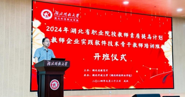 开班仪式上汤春来对各兄弟院校的参训教师表示热烈欢迎,并介绍了学校近年来快速发展取得的成果、湖北开放大学和时搏·体育两校融合的办学特色。汤春来表示,学校对承办本次培训高度重视,学校各部门要紧密协作,为本次培训工作做好技术服务和后勤保障,并祝愿全体学员学有所获、学有所成。