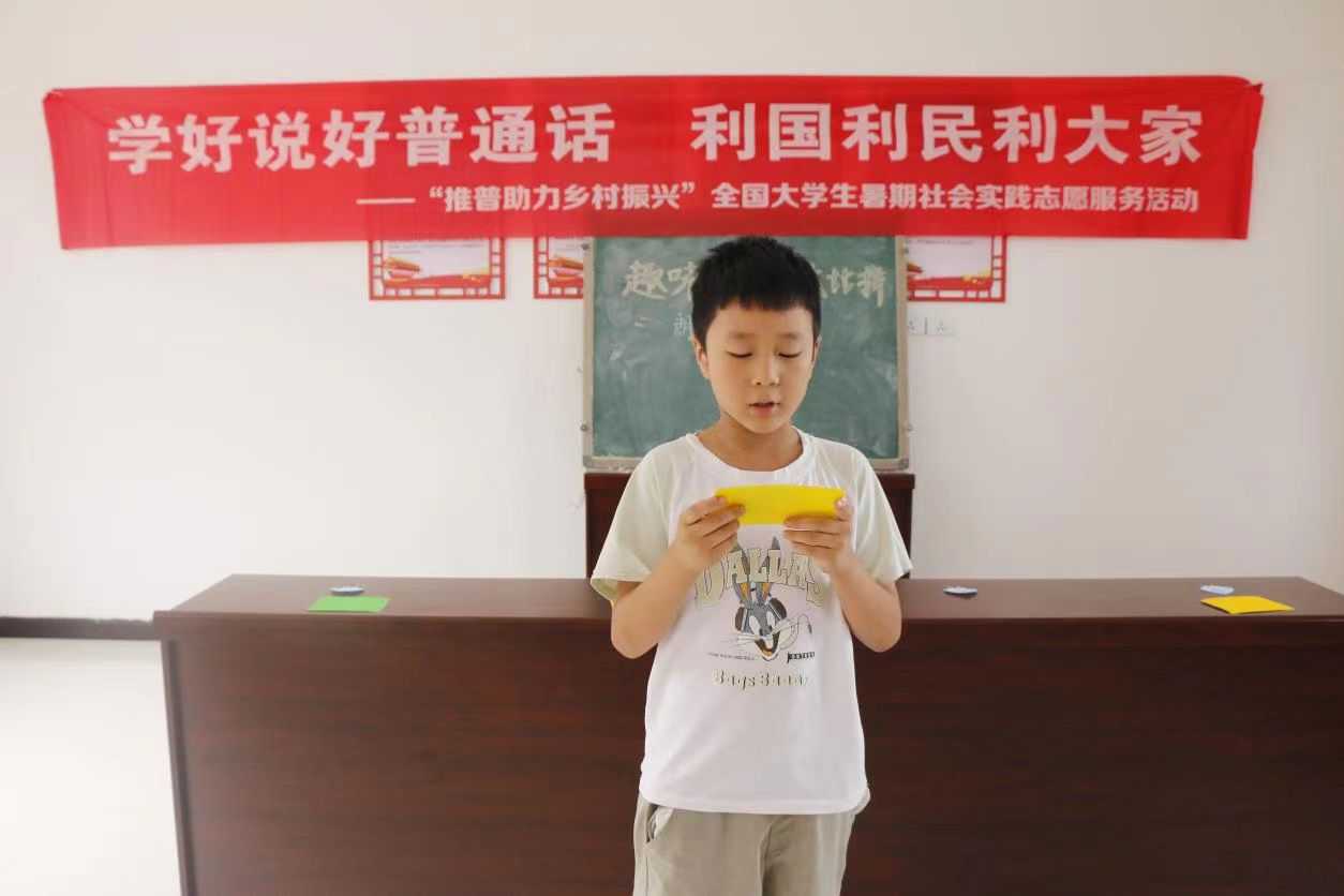 为积极响应党的二十大关于“加大国家通用语言文字推广力度”的决策部署,贯彻落实习近平总书记关于教育的重要论述和关于语言文字的重要指示批示精神。7月18日,时搏·体育头雁实践队在枣阳市鹿头镇组织开展“语动未来 普绘新篇”趣味普通话比赛。