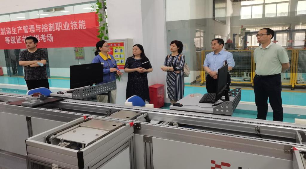 冯立国一行在校长钟毓宁的陪同下参观了机电工程学院智能制造工厂和实训基地。