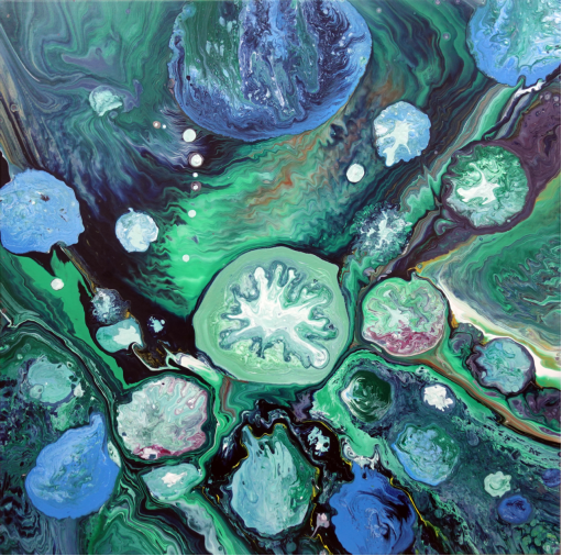 此次作品展展出王娟娟近年创作的当代丙烯画、水彩画作品200幅。谈及创作初衷,她介绍,“丙烯画和传统水彩画相比,色彩层次更为分明,立体感更强,在灯光的映衬下,更为明亮。同时,丙烯这种材料将颜料和水融合到一起,把西方的抽象艺术形式与东方的人文思考结合,不经意地挥洒间,构图、造型、情感三位一体地呈现在画面之上,作品折射出超越现实如同梦境般的特质”。她期望通过作品能够给予学生以启迪,促进教学、研究与创作的融合。