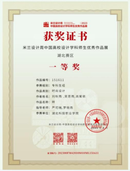 本网讯(通讯员 欧亚梅/文 严可祎/图)6月8日,第七届米兰设计周——中国高校设计学科师生优秀作品展(省赛)公布获奖结果,传媒艺术学院荆楚文化创新设计非命题赛全国总决赛中斩获三等奖2项,非命题赛道湖北赛区中斩获一等奖2项、三等奖1项。