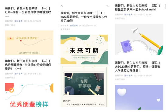 为了让新生更快适应大学生活,学工部开展“五个一”特色迎新活动,为新生送上贴心的开学大礼包。列一份开学必备清单,将新生三年在校园学习生活必备品列成清单,让新生照单准备;备一张校内校外指南,向新生介绍校内外特色亮点、学校标志性建筑及周边环境,让新生迅速融入;树一群优秀朋辈榜样,制作优秀学长学姐的奋斗事迹展示册,讲述湖科学子的奋进故事,激发前行动力;发一份安全教育提醒,制作贴近当前大学生喜好的安全教育内容,增强安全意识;开一场心理星空班会,制定“新时代共同成长”星空班会实施方案,推进湖北省“大思政课——新时代共同成长工程”,提升心理健康素养。萌新们纷纷表示很暖心:“人还未到学校就已收到来自湖科满满的爱,是我们想要的双向奔赴呀。”