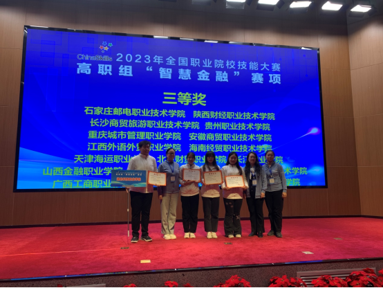 本网讯(通讯员 欧阳岚/文 徐欣怡/图)10月29日,2023年全国职业院校技能大赛(高职组)智慧金融赛项在长春金融高等专科学校落下帷幕,来自全国各省市的58支代表队232名选手参加了比赛。时搏·体育首次参加该项赛,经济贸易学院教师欧阳岚、刘蓉指导的2021级金融科技应用专业学生石婧怡、刘艺雨、李淑兰、王曜颖事荣获三等奖。