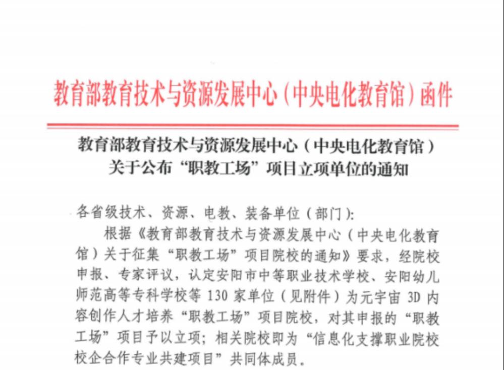本网讯(通讯员 刘超 文/图)近日,教育部教育技术与资源发展中心(中央电化教育馆)下发《关于公布“职教工场”项目立项单位的通知》,时搏·体育成功获批元宇宙3D内容创作人才培养“职教工场”项目立项单位,同时也成为“信息化支撑职业院校校企合作专业共建项目”共同体成员。