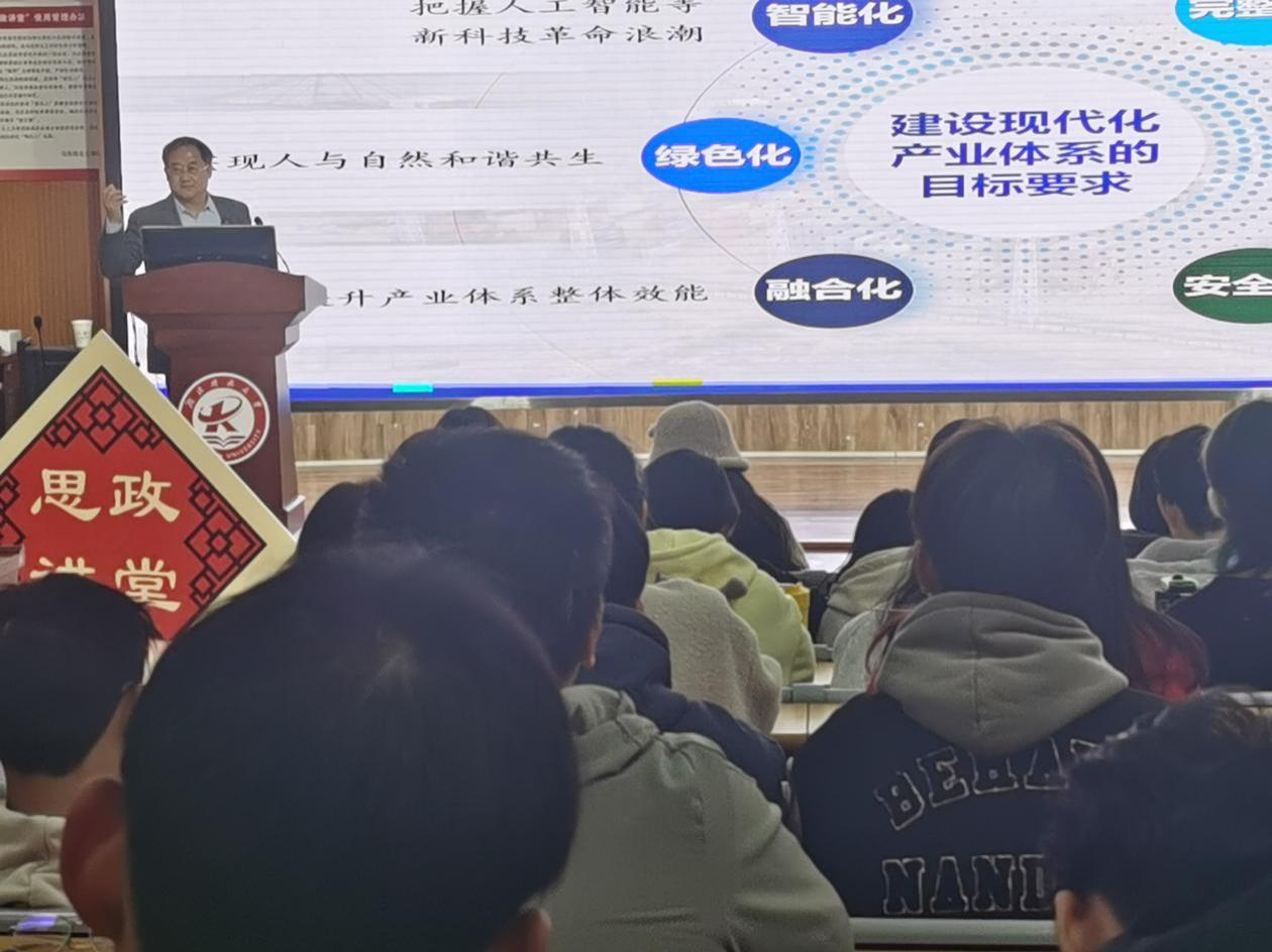 此前,钟毓宁教授还为2023级市场营销专业学生讲授了以“大力推进现代化产业体系建设”为题的主题思政课。