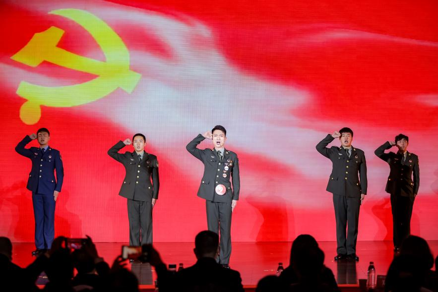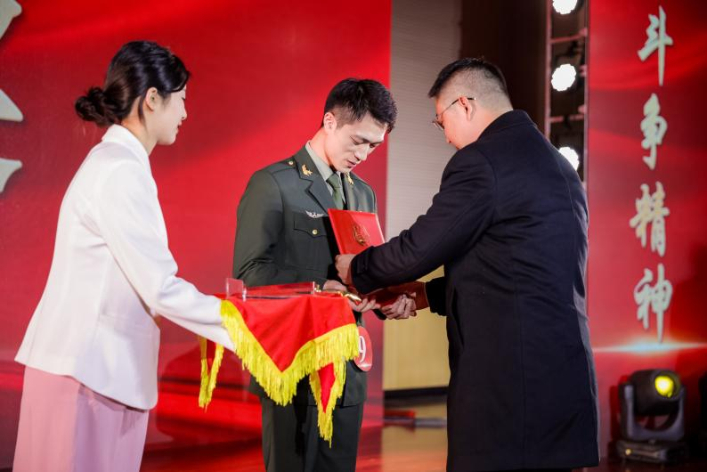 比赛现场,王磊同学以“从军行”为主题,讲述了他从学校应征入伍,服役于驻香港部队某特种作战营的奋斗故事,字字真情,掷地铿锵,展现出了中国军人的飒爽英姿。服役期间,他所在单位被习近平总书记授予“香港驻军模范特战连”荣誉称号。如今戎装虽褪,但报国心不泯。他的一句“我始终记得退役仪式时在军旗下庄严的承诺:若有战,召必回!”博得了现场如雷般的掌声。展示环节中,当舞台上的集结号响起时,时搏·体育五名来自不同兵种的退役士兵代表在舞台上迅速集合,他们的庄严宣誓,演绎出新时代青年一朝从军报国,一生坚守本色的决心,再次感动全场。