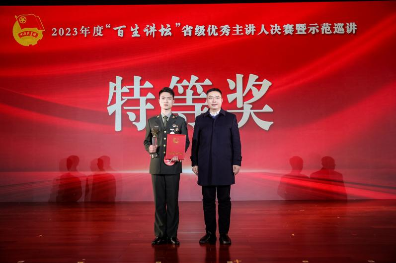 2023年5月,团省委、省学联下发了关于在全省高校团学组织中持续深化“百生讲坛”学习宣传贯彻习近平新时代中国特色社会主义思想活动的通知。校团委积极响应、精心组织,经班—院—校层层遴选推荐,经济贸易学院的王磊同学从各级赛事中脱颖而出,并以分赛区第一名的好成绩入围了省级决赛暨示范巡讲活动。备赛过程中,经贸学院领导老师反复打磨文稿,进入决赛后共同精心制作背景视频,排练情景展示环节,力求达到最佳表现效果,在省级舞台上展现湖科学子风采。