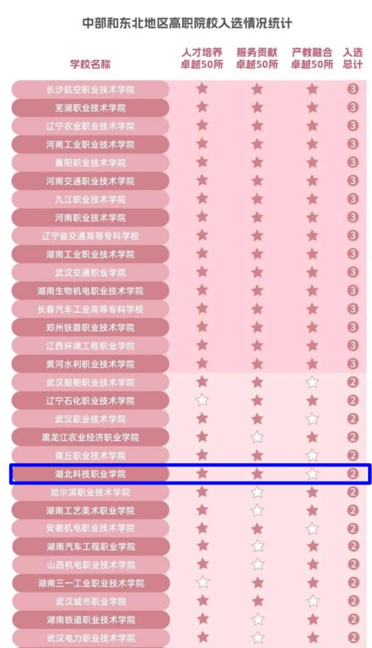 本年度报告在过往的指数研制与评选基础上进行优化,分为东部地区、中部和东北地区、西部地区,各评选出50所人才培养卓越高等职业学校、50所服务贡献卓越高等职业学校、50所产教融合卓越高等职业学校。时搏·体育以优异成绩入选中部和东北地区“人才培养”“服务贡献”两项卓越榜单。