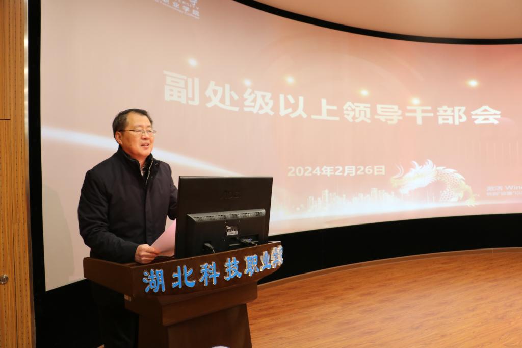 刘义强调,2024年是学校事业发展的关键一年,挑战与机遇并存,大家要坚定信心,把握重点,着力从三个方面抓好落实。一要积极谋划,主动作为。过去几年,我们依靠自身努力取得了很好的发展成效,我们要继续坚持目标导向,积极谋划、主动作为,遇到困难和问题多找内因、少找外因,增强推进工作的主动性和创造性。二要敢于斗争,久久为功。今年学校提出了“稳中求进、以进促稳”工作总基调,其目的就是为了发展。学校事业迈入高质量发展新阶段,再取得突破难度比以往更大,我们要继续保持战略定力和发展耐心,坚持创新突破,持之以恒、以久致胜。三要善于学习,注重总结。当今世界正处于百年未有之大变局,在贯彻新发展理念、构建新发展格局、推动高质量发展过程中遇到的问题比以往更加多样复杂,有的领导干部感觉到了本领恐慌,我们要坚持问题导向,加强学习,结合实际学,带着问题学,跟着专家学,不断提升能力本领。要立足学校实际,坚持开放教育与职业教育融合发展,充分发挥新型高等学校的优势特色,切实做到在实践中总结、在总结中提高。
