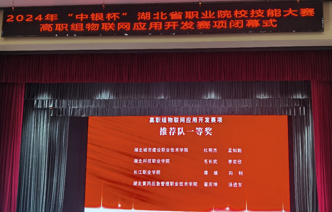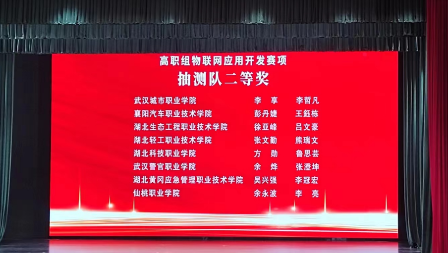 本网讯(通讯员 吴珂/文 鲍毅/图)2024年湖北省职业院校技能大赛高职组物联网应用开发赛项于3月18日至22日顺利举行。时搏·体育物联网应用技术专业2022级学生毛长武、李奕欣组成的推荐队获推荐组一等奖(排名第二),方勋、鲁思芸组成的抽测队获抽测组二等奖(排名第十);物联网应用技术专业教师鲍毅、刘瑞北获教师组三等奖;鲍毅、刘瑞北获优秀指导教师奖。
