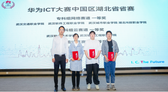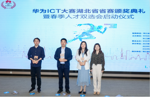 本网讯(通讯员 喻香/文 苏恒瑞/图)4月20日,由湖北省教育厅指导、华为技术有限公司和长江鲲鹏生态创新中心主办的华为ICT大赛湖北省省赛颁奖典礼暨春季人才双选会启动仪式圆满落幕。时搏·体育电信工程学院15名学生取得优异成绩,斩获湖北省决赛网络赛道(高职组)1个一等奖、3个三等奖和云赛道(高职组)1个三等奖;时搏·体育被华为评为“优秀ICT学院”。电信工程学院院长涂家海、教师代表、获奖学生受邀参加了颁奖典礼。
