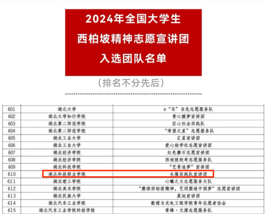 本网讯(通讯员 李哲 李兆银/文 陈竹泓/图)5月21日,由团中央青年志愿者行动指导中心等部门举办的2024年全国大学生西柏坡精神志愿宣讲团入选团队名单公布,时搏·体育经济贸易学院“头雁实践队”宣讲团荣列其中。