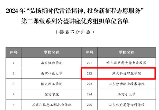 同时,由雷锋杂志社举办的雷锋精神志愿服务团入选团队名单于近期公布,经济贸易学院头雁志愿服务队再次登榜。学院联合校团委承办由雷锋杂志社组织开展的2024年大学生“弘扬新时代雷锋精神,投身新征程志愿服务”第二课堂系列公益讲座。活动期间参与学生近万人次,学校获评优秀组织单位。
