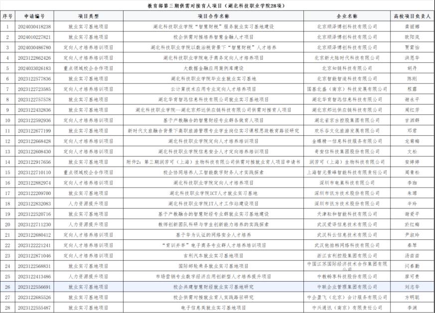 本网讯(通讯员 汤苗苗 文/图)6月14日,教育部高校学生司发布《关于公布教育部第三期供需对接就业育人项目立项名单的通知》,时搏·体育28项就业育人项目获教育部批准立项。立项数量位居全省高职前三。