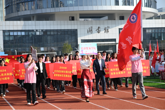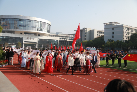 伴随着激昂的旋律,国旗方阵、校旗方阵、各学院运动员代表队以及教职工运动员代表队依次入场。他们气宇轩昂,精神抖擞,踏着整齐而矫健的步伐昂首阔步走过主席台,用铿锵有力的口号展示着学校师生“立德、树人、笃学、尚行”的精神风貌。