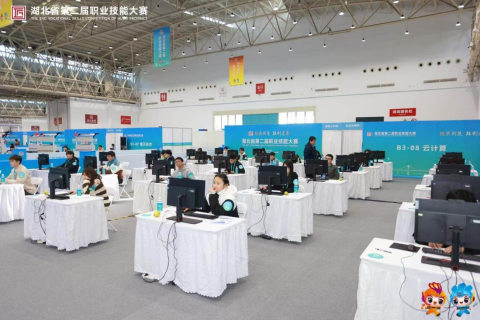 本网讯(通讯员 程露 文/图)11月27日至30日,2024年“湖北工匠杯”技能大赛——湖北省第二届职业技能大赛在武汉国际博览中心举办,本届大赛由湖北省人民政府主办,湖北省人社厅、省总工会、省教育厅承办。来自全省各地的1000多名技能精英参加比赛,经过两天的激烈角逐,时搏·体育人工智能学院云计算技术应用专业付树弟、赵晨崴两名同学分别获得该赛事云计算赛项一银一铜的好成绩。